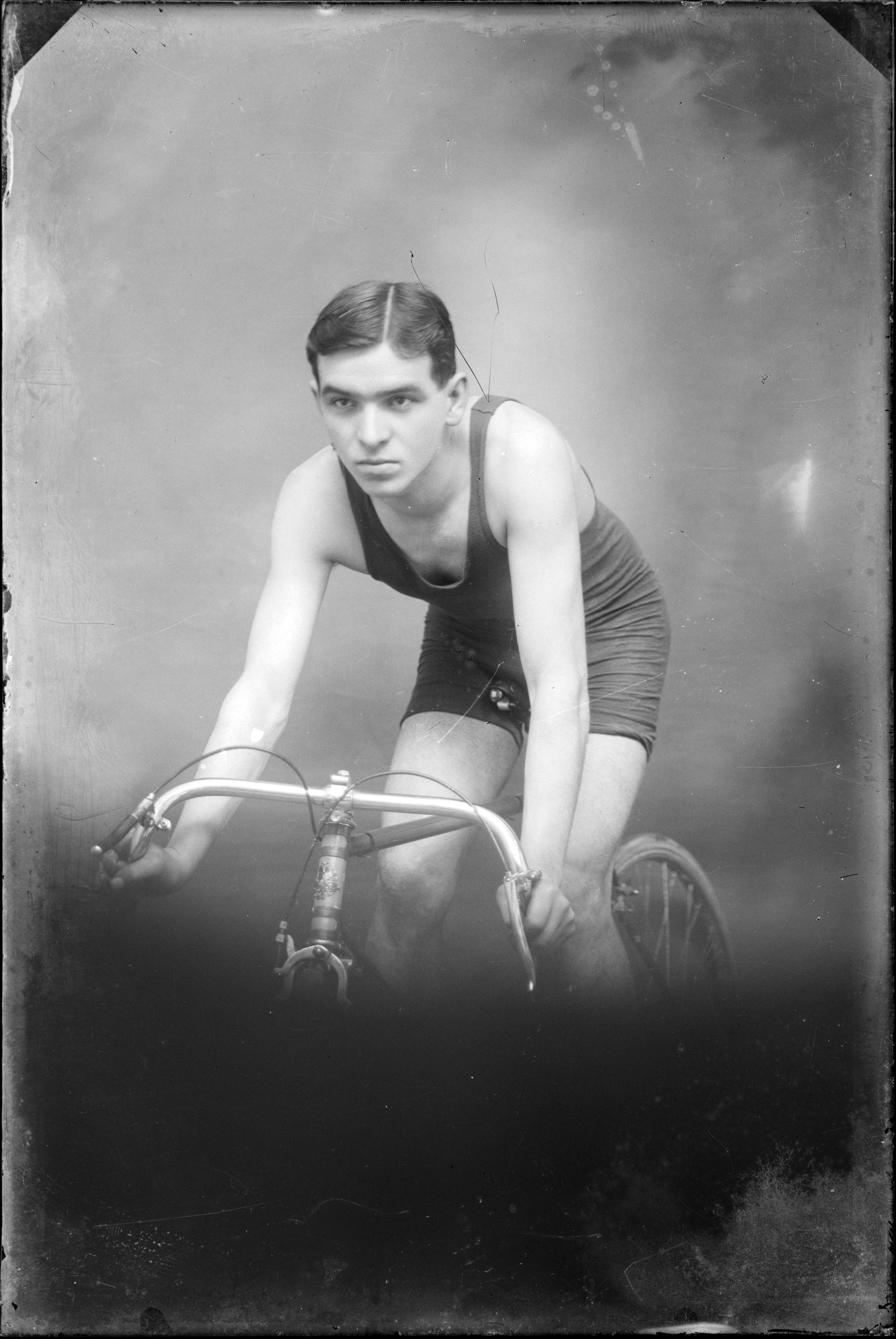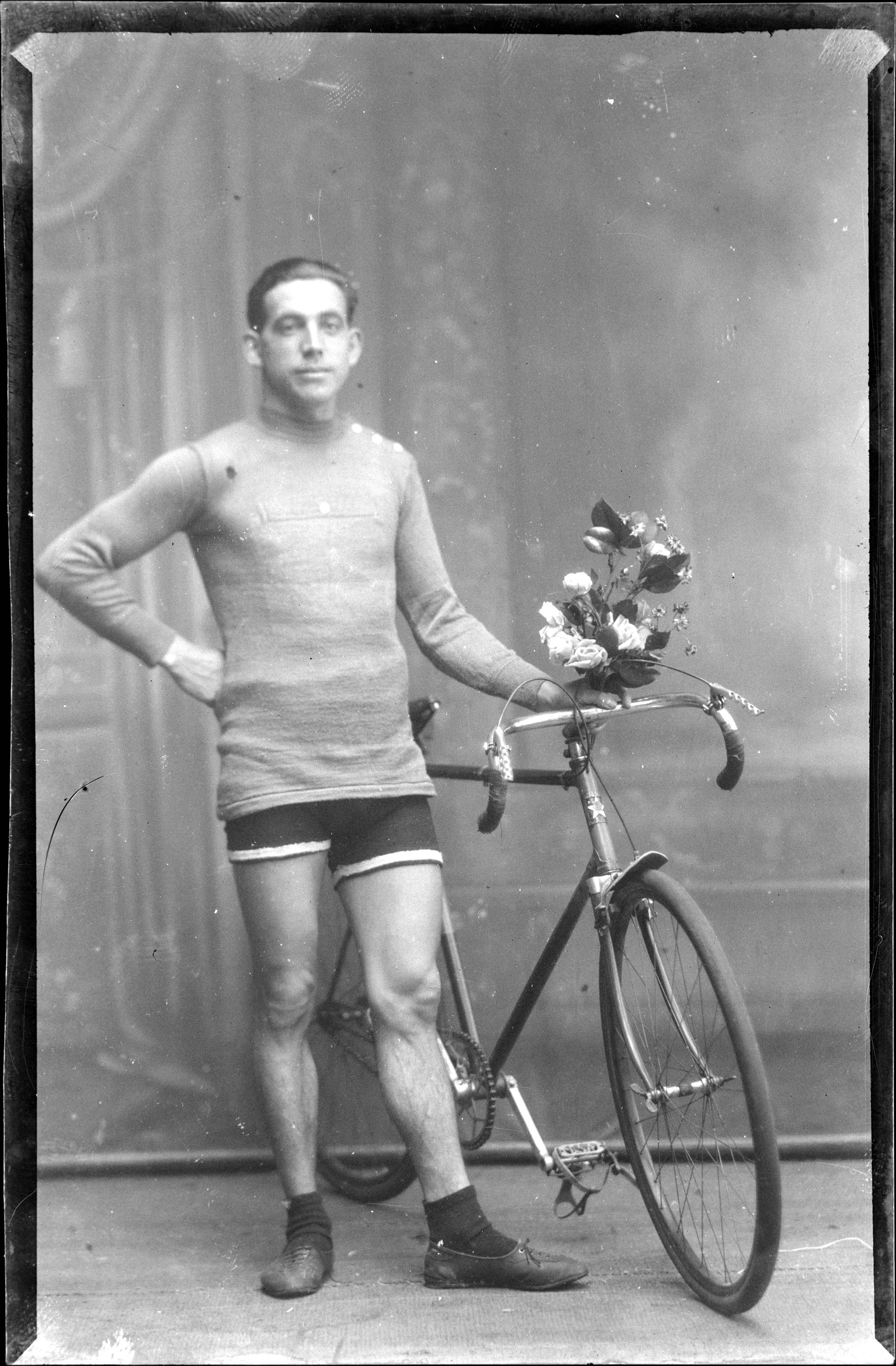 Txirrindulari bat umez inguratuta (Indalecio Ojanguren fondoa) |