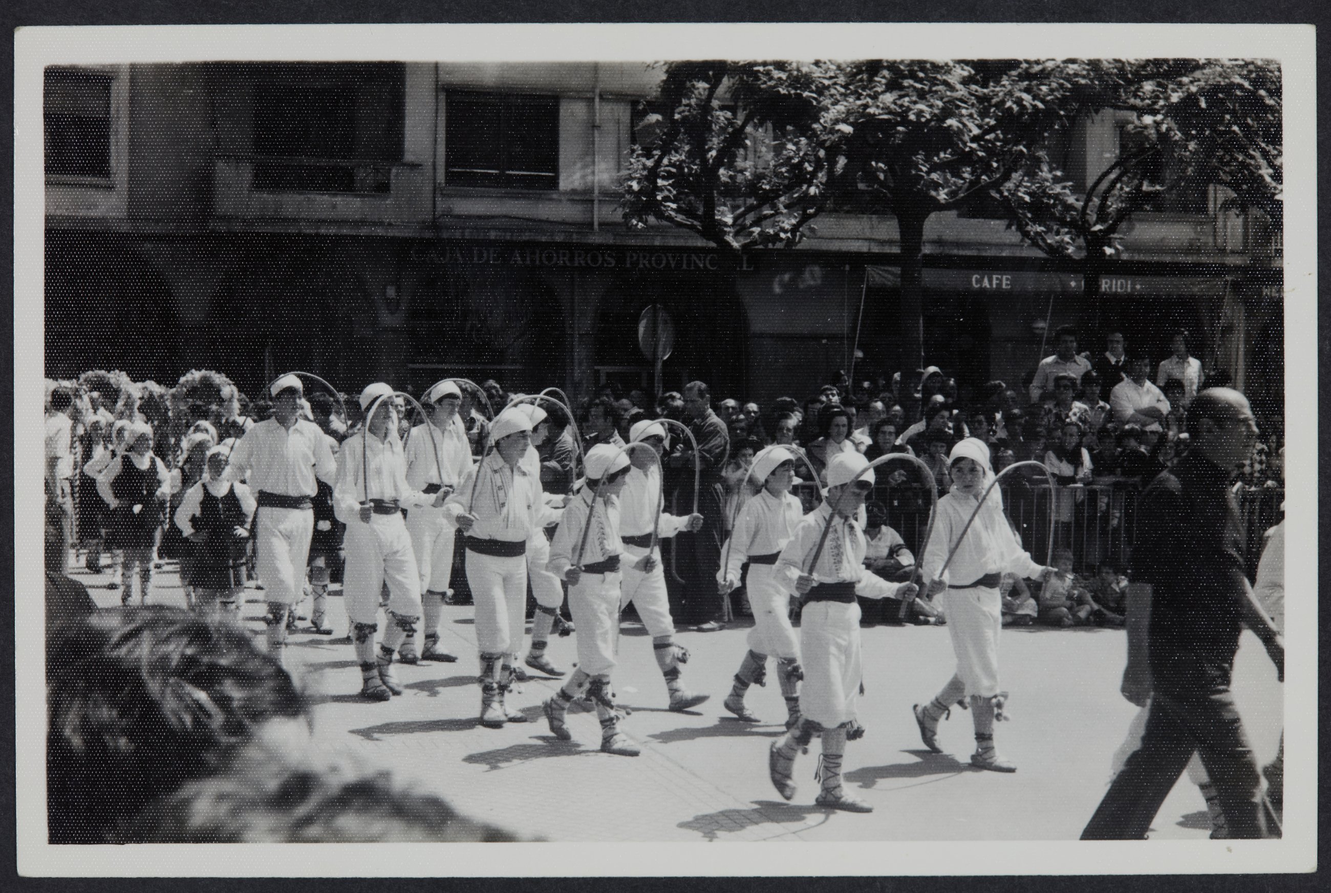 Plazara haur talde bat sartzen ari da uztai dantza dantzatzeko.