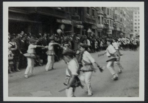 Haurrak Eibarko kalean dantzatzen. 1966 urteko Euskal Jaiak.