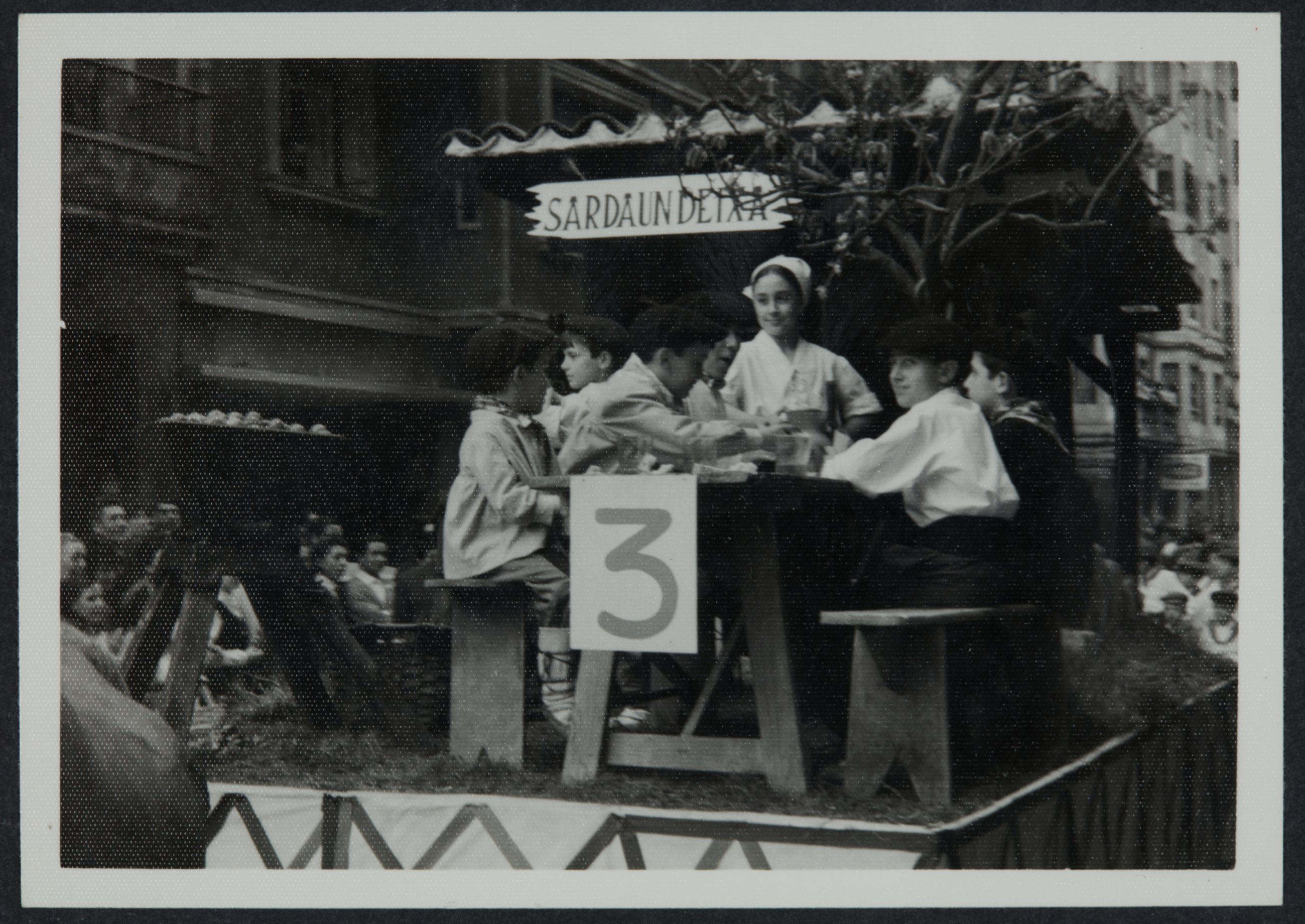 1966 urteko Euskal Jaian "Sardaundetxa" karrozaren aurretiko ikuspegia. 3 zenbakia du karrozak. Bertan gazteak antzezten daude. Lehenengo saria irabazi zuen.