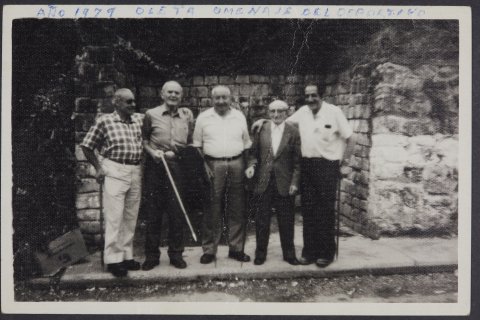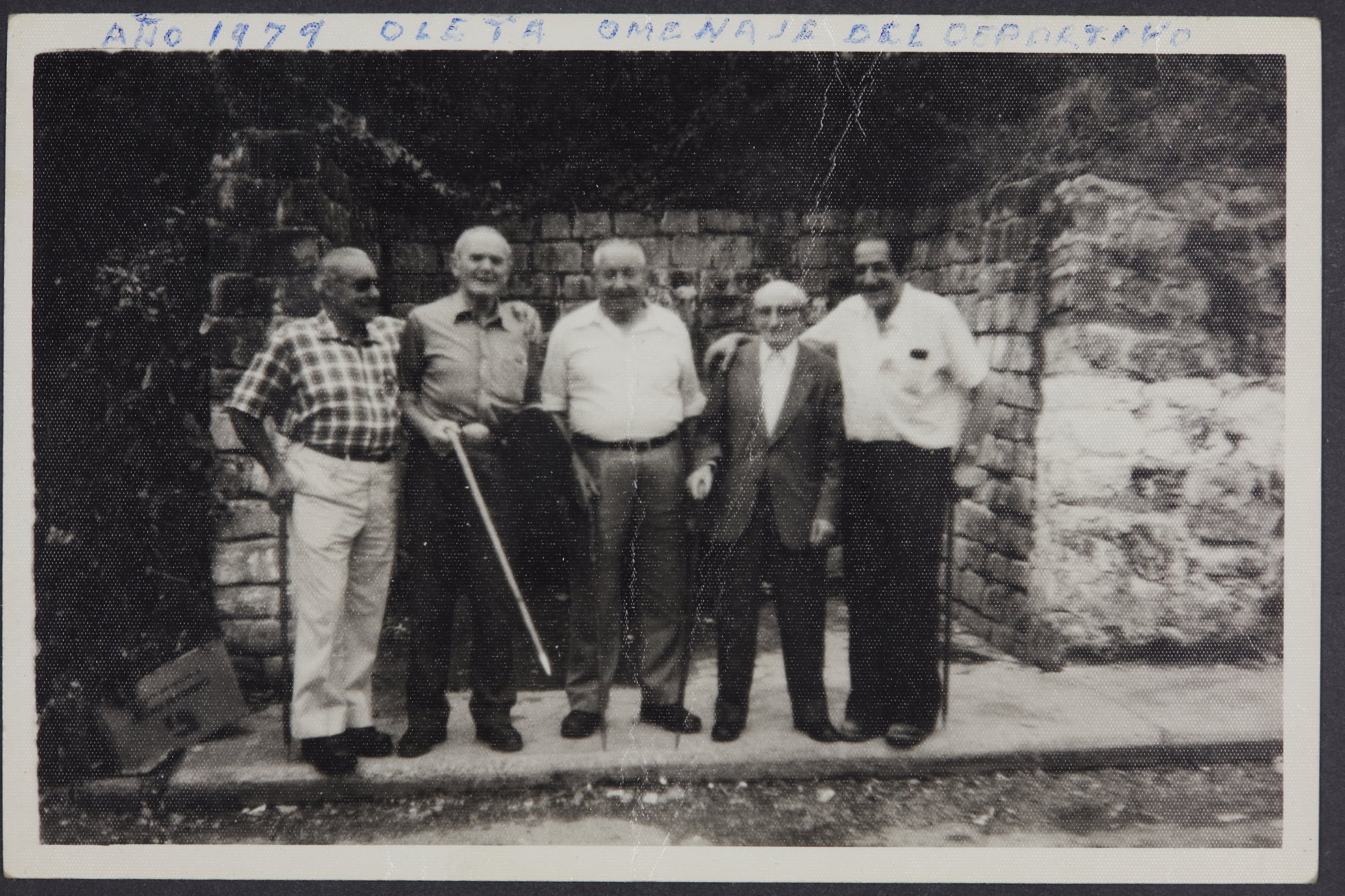 Argazkian bost gizon heldu daude. Argazkian Deportibaren omenez egindako irteera izan zela jartzen du, Oletatik Lekeitiora.